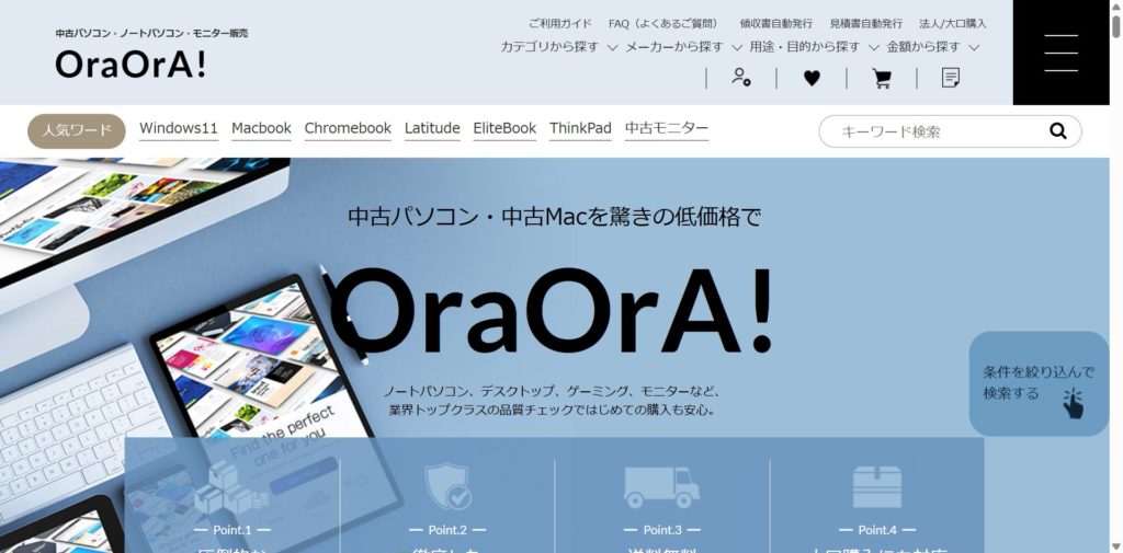 スペックや保証の情報を整理し、購入までの迷いをなくす工夫が見られます。