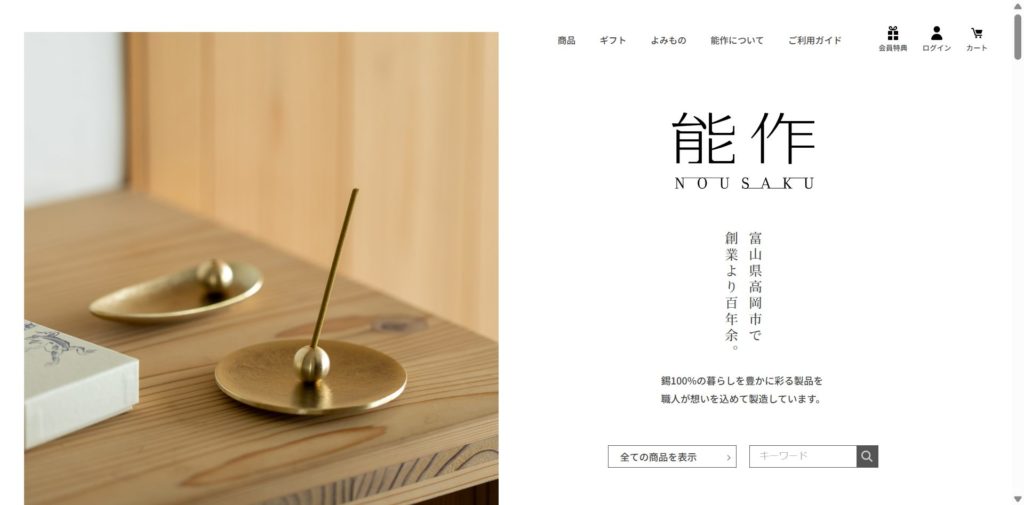 鋳物ブランドらしい重厚感を残しつつ、洗練されたサイト構成。
