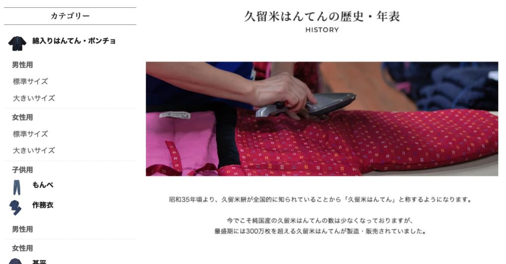 ▲店のこだわりを写真と歴史年表で伝え、信頼感を高めている事例