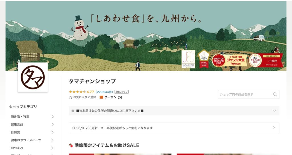 2025年までは楽天GOLD※を使い、独自デザインの店舗トップページも多くありましたが、2026年からは、全店舗が楽天市場が統一した新しいUIに移行しました。